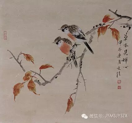红叶疏枝,留下了秋风秋霜扫荡之后的风骨;石榴展叶,起伏成韵,是日月照耀之下的清辉;而花木间,总会有无言的鸟自在而悠闲,深情而又落寞地感悟花开花落,静而无语而又生机勃勃的画中诗绪。