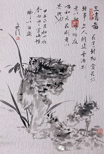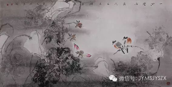 他崇尚水墨,以单纯、质朴、含蓄、清逸、典雅、微妙无穷变化描写大自然中的花情鸟态,素素的墨,是五色褪去之后的绚丽;淡淡的水,是风韵溢流而来的幽情;朦朦的象,是真幻之间相望的深情;苍苍之花,是经历磨难之后的吟唱;悠悠之叶,是丝丝风中微微起舞的才情。他成功地表现其生机活力,抒发了自己动人的感受,讴歌了高尚的情操,寄托了真善美统一的理想,在花鸟画领域构建出玄机四溢的水墨世界。在这个纯净的世界里,脱尽脂粉,不失状物精妙的形体,以墨带色,流露出清真逼人的情韵,大有五代徐熙画中“型骨轻秀,天水通色”的野逸之趣,更有宋人仇山村诗中所云“淡漠英英墨写真,一花一叶一精神”之襟怀。跨越明清宋元之间有一种格调,那本是绘画本体上的一种格调,一种曾被冷落之后的格调,于是它在沉静数百年之后被人重新记起,又被人重新挖掘,当代挖掘者之中,文佳的步履是如此敏捷。挖掘是快乐的,品味更是快乐的,艰苦的艺术之途上以苦作乐,又何尝不是一种大快乐呢?